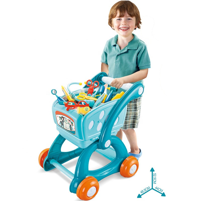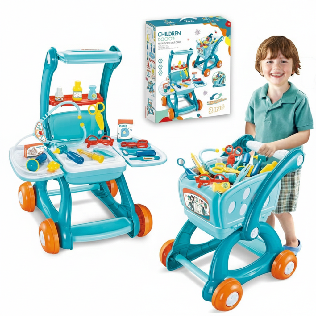 👶 3 في 1 متعة اللعب: يجمع بين مجموعة أدوات الطبيب التخيلي، ومحطة اللعب الطبية، وعربة محمولة في مجموعة ألعاب متعددة الاستخدامات.