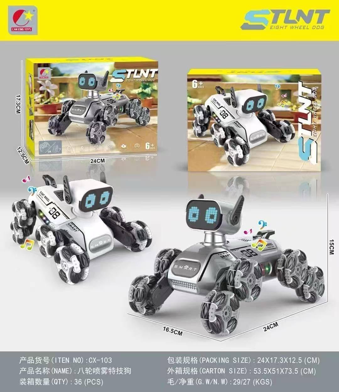 🟢 التكنولوجيا الذكية والحركات البهلوانية: هذا الرفيق "الذكي" لا يتدحرج فحسب، بل يمشي بزوايا متعددة، محاكياً رشاقة جرو حقيقي مع لمسة روبوتية عالية التقنية.